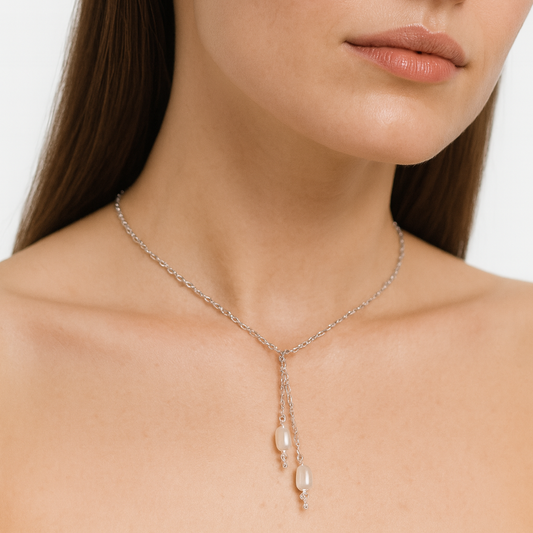 Serene Chic Silver – Pearl Necklace, Bracelet & Earrings Jewelry Set