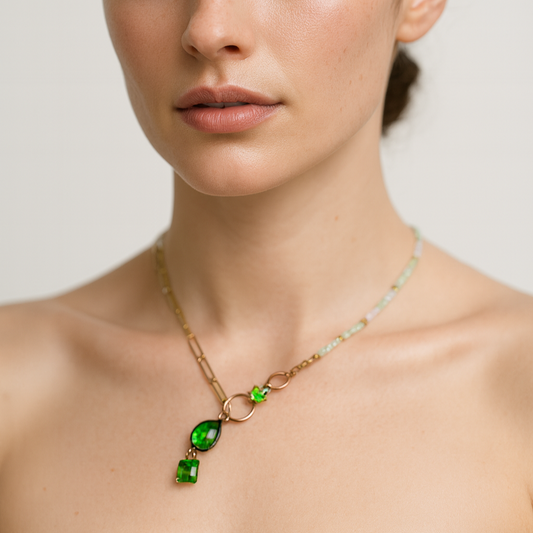 Marisol Fresh Elegance– Beaded Gold Necklace, Earrings & Satin Scrunchie
