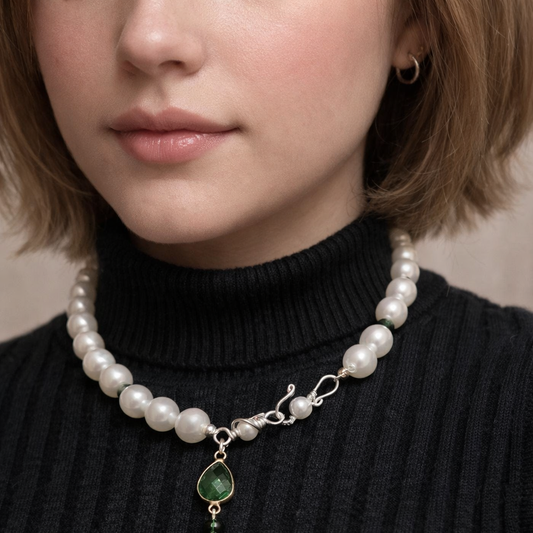 Serene Emerald Glow – Pearl & Green Gemstone Jewelry Set