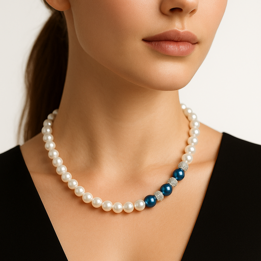 Serene Celeste Dream – Silver Necklace & Blue Pearl Earrings Jewelry Set