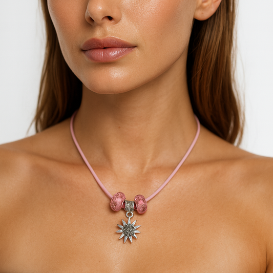 Victoria Shine– Pink Necklace, Charm Bracelet and Satin Hair Scrunchie